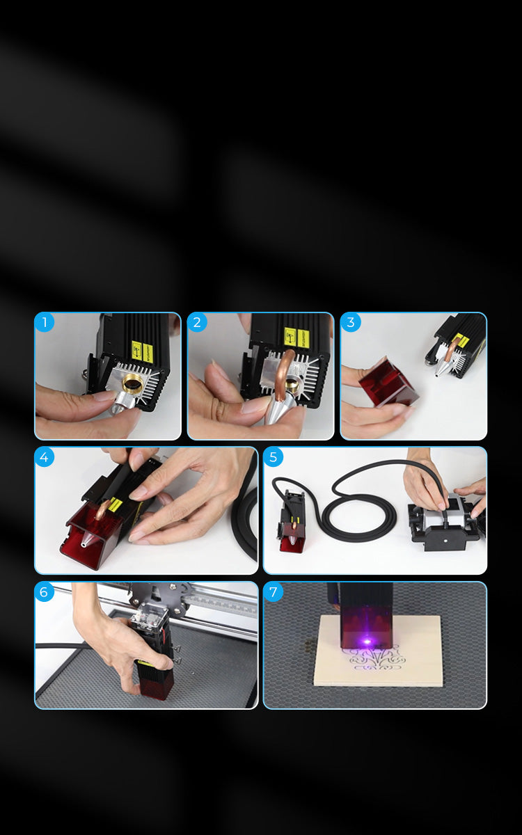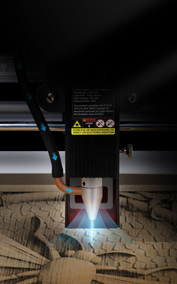 The powerful and stable airflow can blow away the smoke and dust effectively during engraving or cutting, protecting the lens of the laser module and ensuring the stability of the laser energy.